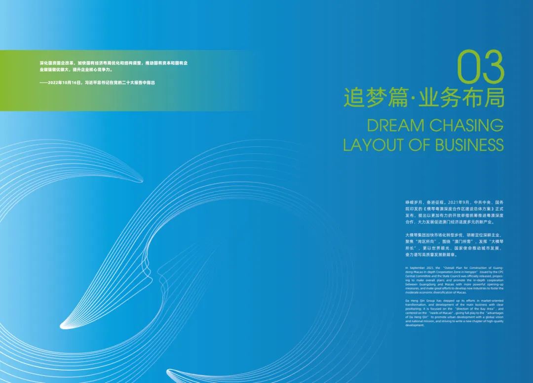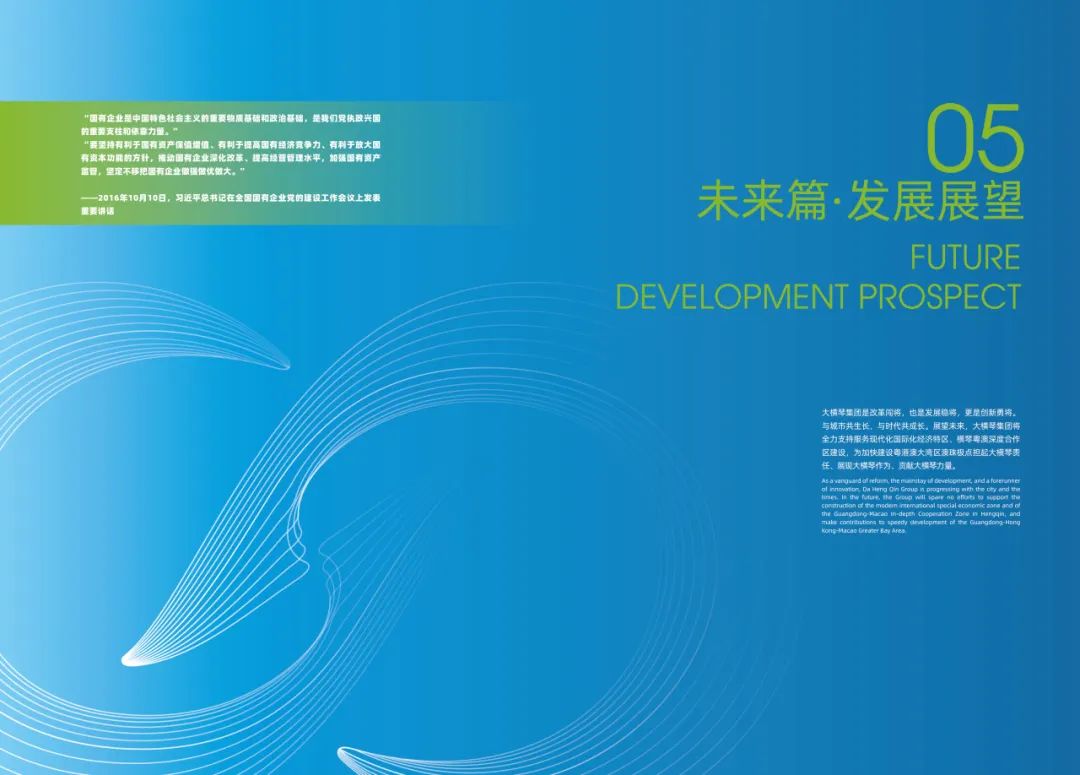 大橫琴集團(tuán)是改革闖將,也是發(fā)展穩(wěn)將,更是創(chuàng)新勇將。展望未來,大橫琴集團(tuán)繼續(xù)堅(jiān)定以黨的二十大精神,作為統(tǒng)領(lǐng)集團(tuán)全部工作的總綱,全力開創(chuàng)集團(tuán)高質(zhì)量發(fā)展新格局,為高質(zhì)量建設(shè)新時(shí)代中國特色社會(huì)主義,現(xiàn)代化國際化經(jīng)濟(jì)特區(qū)和橫琴粵澳深度合作區(qū)貢獻(xiàn)新力量、展現(xiàn)新作為。