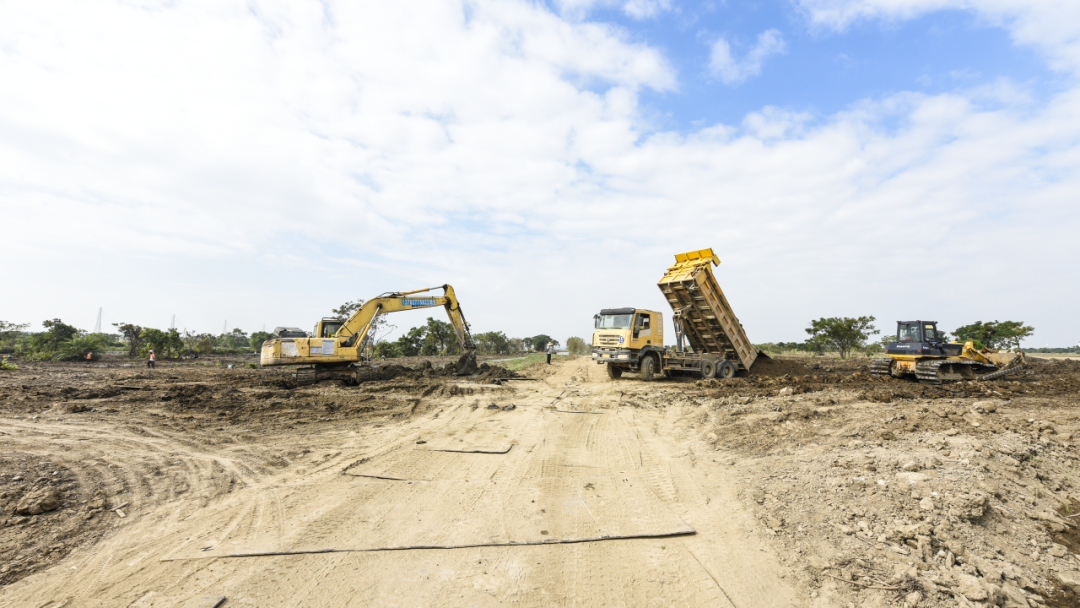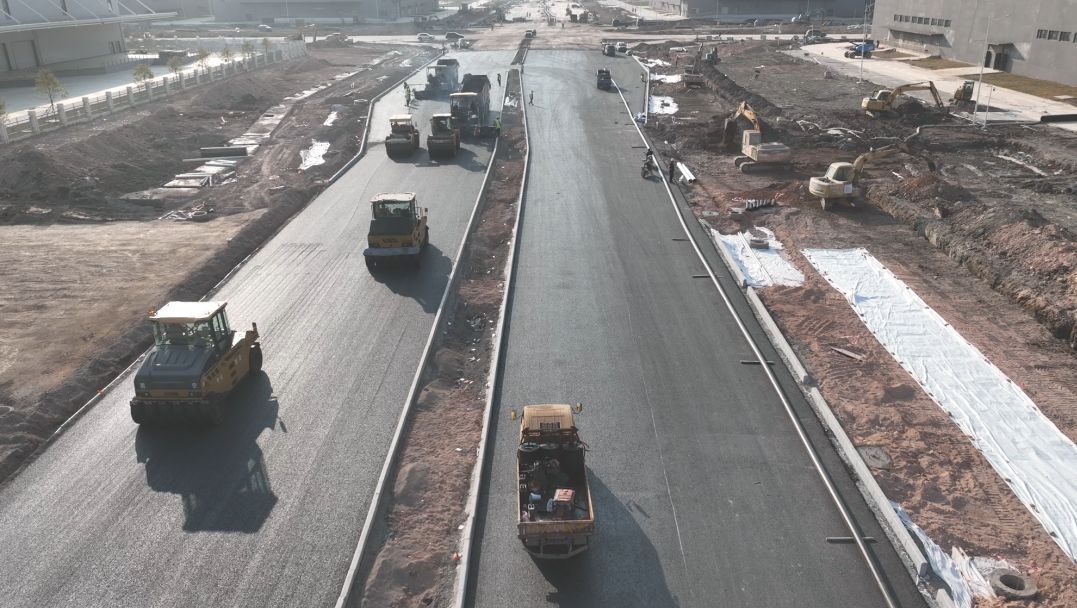 富山二圍北園區(qū)配套道路工程施工現(xiàn)場(chǎng)